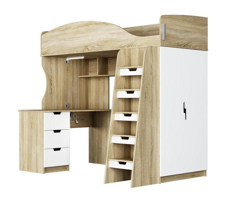 —Детская Кровать-Чердак Сэнди Дуб Сонома/Белый Глянец (Д-1235 х В-1820 х Г-2038 мм)