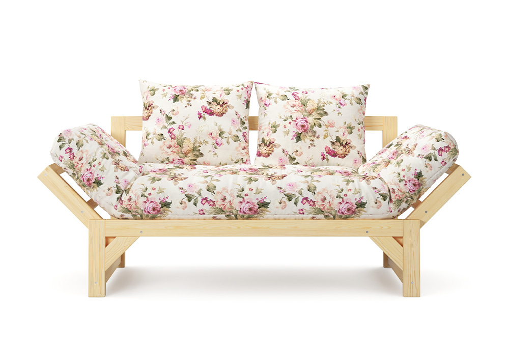 Максимальная нагрузка — 220кг. Ширина деревянной спинки 130 см. Приспинные подушки, представленные на фото, входят в комплект. Декоративные приобретаются отдельно. Диван продается без лакокрасочного покрытия, под самостоятельную покраску. Высота сиденья без матраса - 31 см, с матрасом 46 см. |