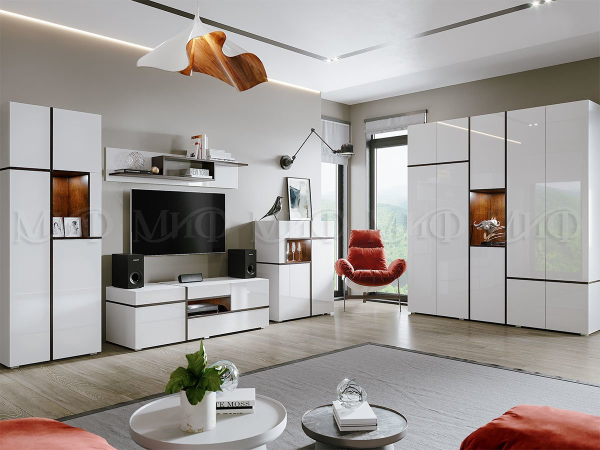 Гостиная Мадрид (3000 мм x Высота 1950 мм x Глубина 524 мм) + Шкаф (2002 мм x Высота 2236 мм x Глубина 524 м)