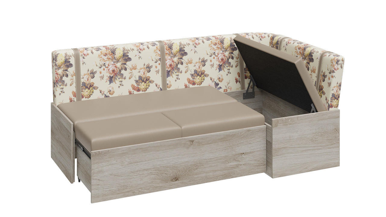 —Скамья угловая со спальным местом «Париж» (Баттл Рок/ Цветы бежевые)